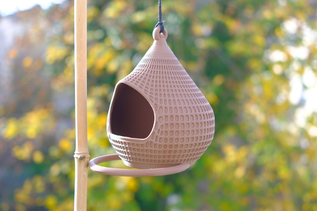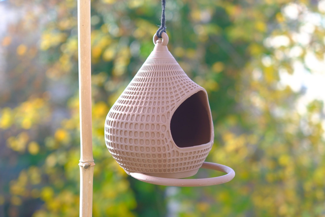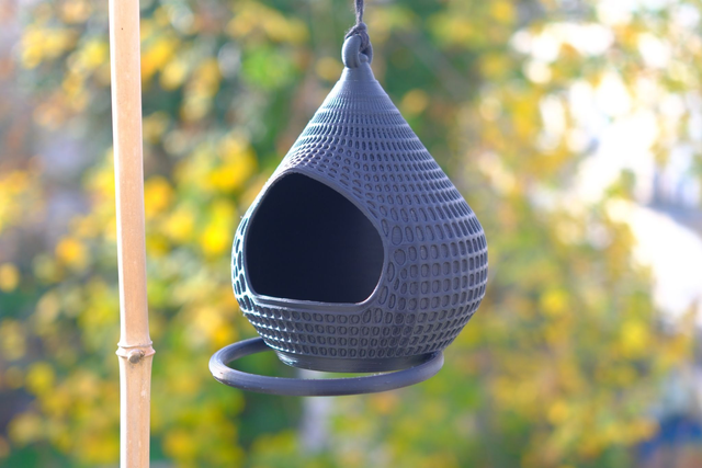 Maison pour oiseaux 🐦 Modèle goutte 1 entrées avec perchoir en cercle.