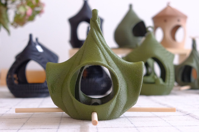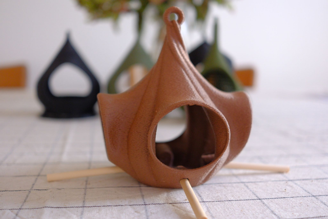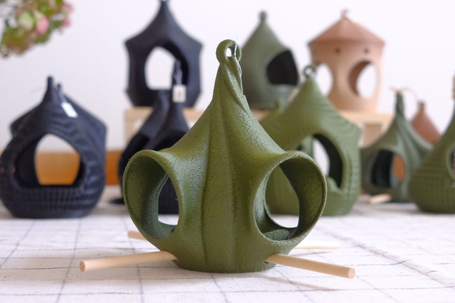 La mangeoire Louise Bâton a 4 entrées avec des perchoirs en bois. Les dimensions sont 12cmx12cmxh14cm. Existe en plusieurs colories. Fabrication artisanale par la Maison Le Du, réalisée à l’unité en impression 3D avec un filament biosourcé. Ce modèle existe sans les bâtons.