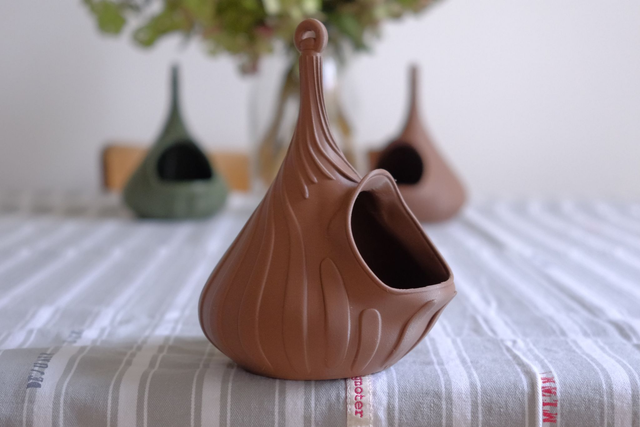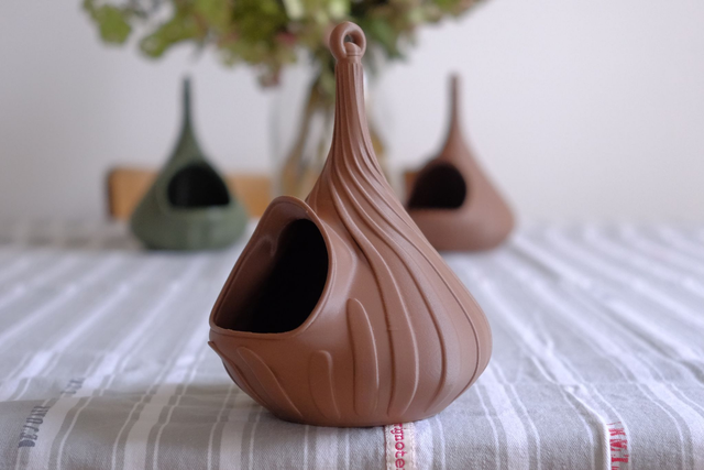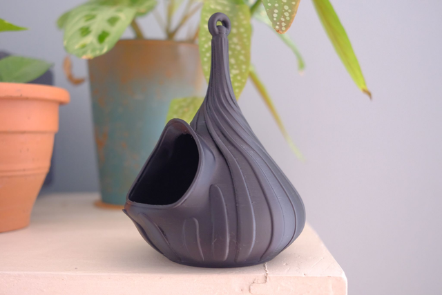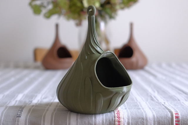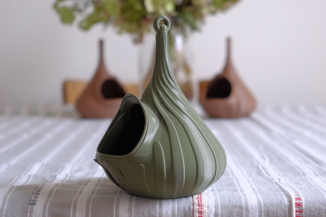 La mangeoire Sabine volute a 1 entrée et une décoration en spirale. Les dimensions sont 11cmx12cmxh15cm. Existe en plusieurs colories. Fabrication artisanale par la Maison Le Du, réalisée à l’unité en impression 3D avec un filament biosourcé. Ce modèle existe en plusieurs déclinaisons.